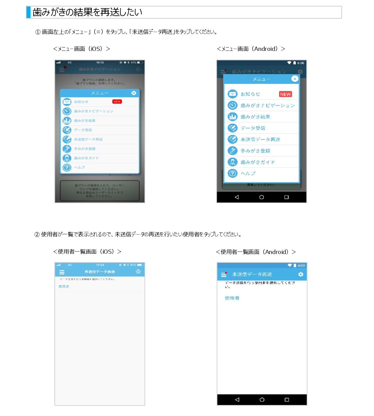 歯ブラシに蓄積された歯みがきデータをスマートフォンに移動したい